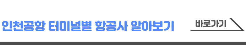 인천공항은 제1여객터미널과, 제2여객터미널로 나눠져있습니다. 여행하시는 항공사가 어느 터미널에 있는지 알고 계셔야, 객터미널 근처의 부대시설을 이용해야 비행기 탑승시까지 알차게 시간을 보내실수 있지 않을까요? 아래 버튼을 누르시면 인천공항의 터미널별 항공사를 알아보실수있습니다.