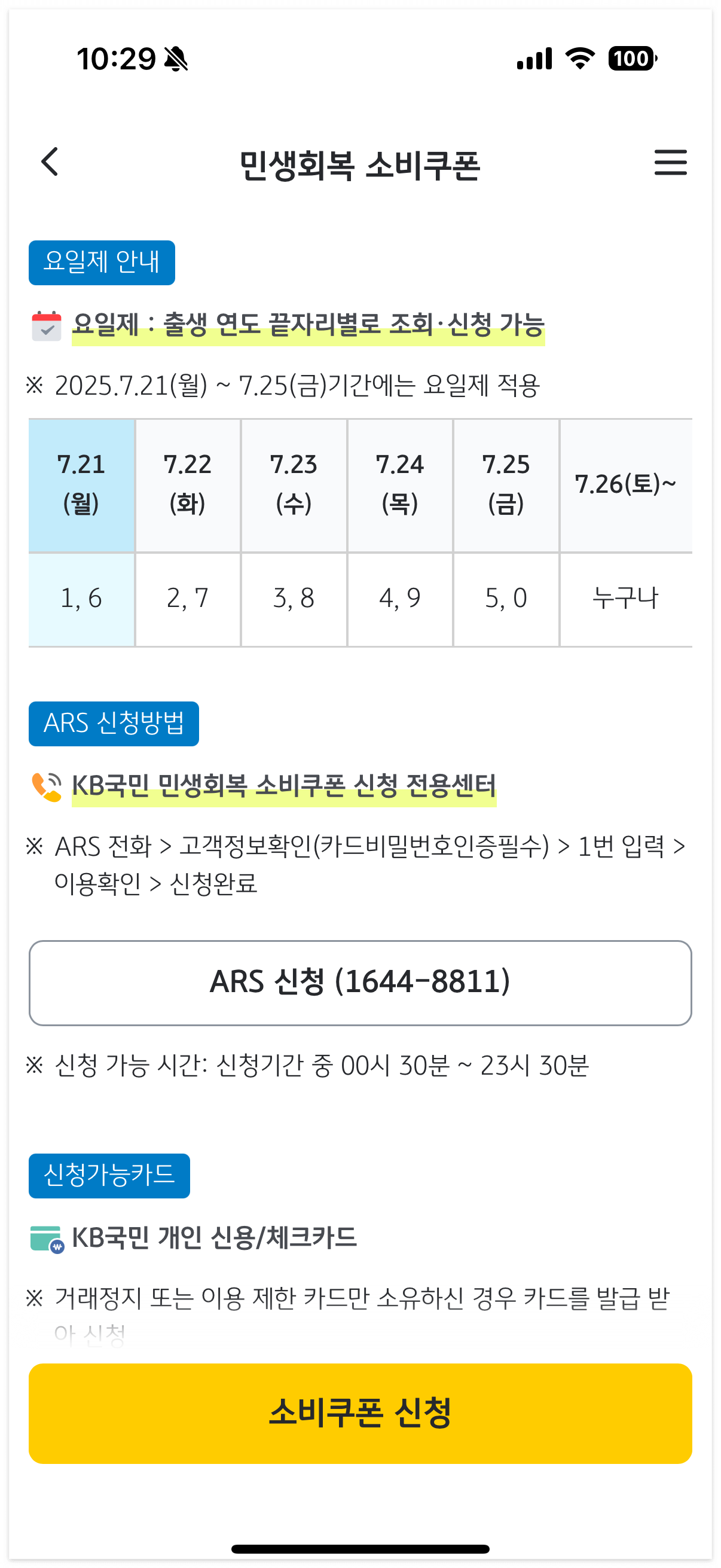 아래는 KB카드 앱에서 지원금 신청을 해보았어요.