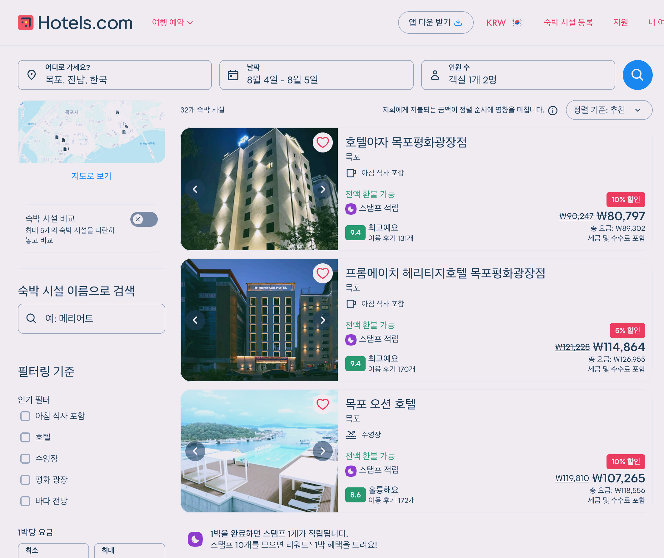 제가 여행갈때마다 이용하는 호텔예약사이트 호텔스닷컴이예요.